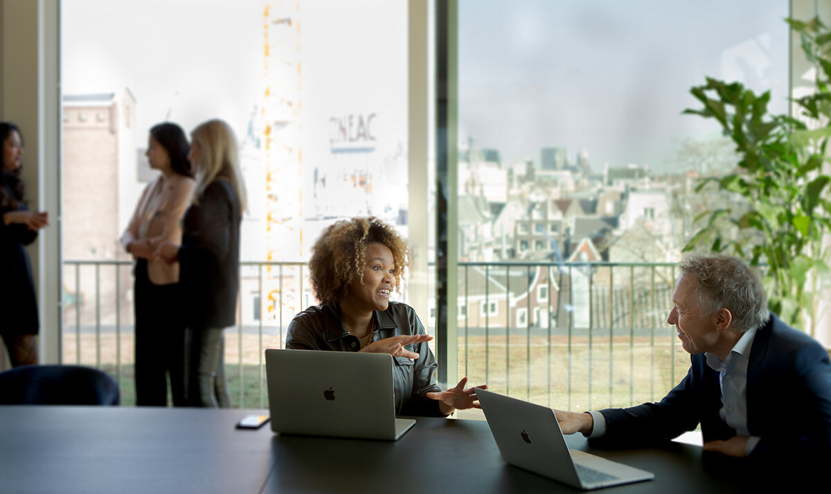 最上階のミーティングルームには、ルーフトップテラスもあり、目の前には、アムステルダムの街並みの屋根の連なりが一望の元に広がっている。