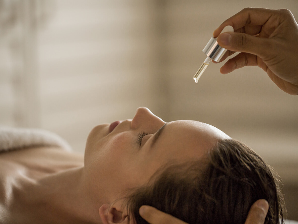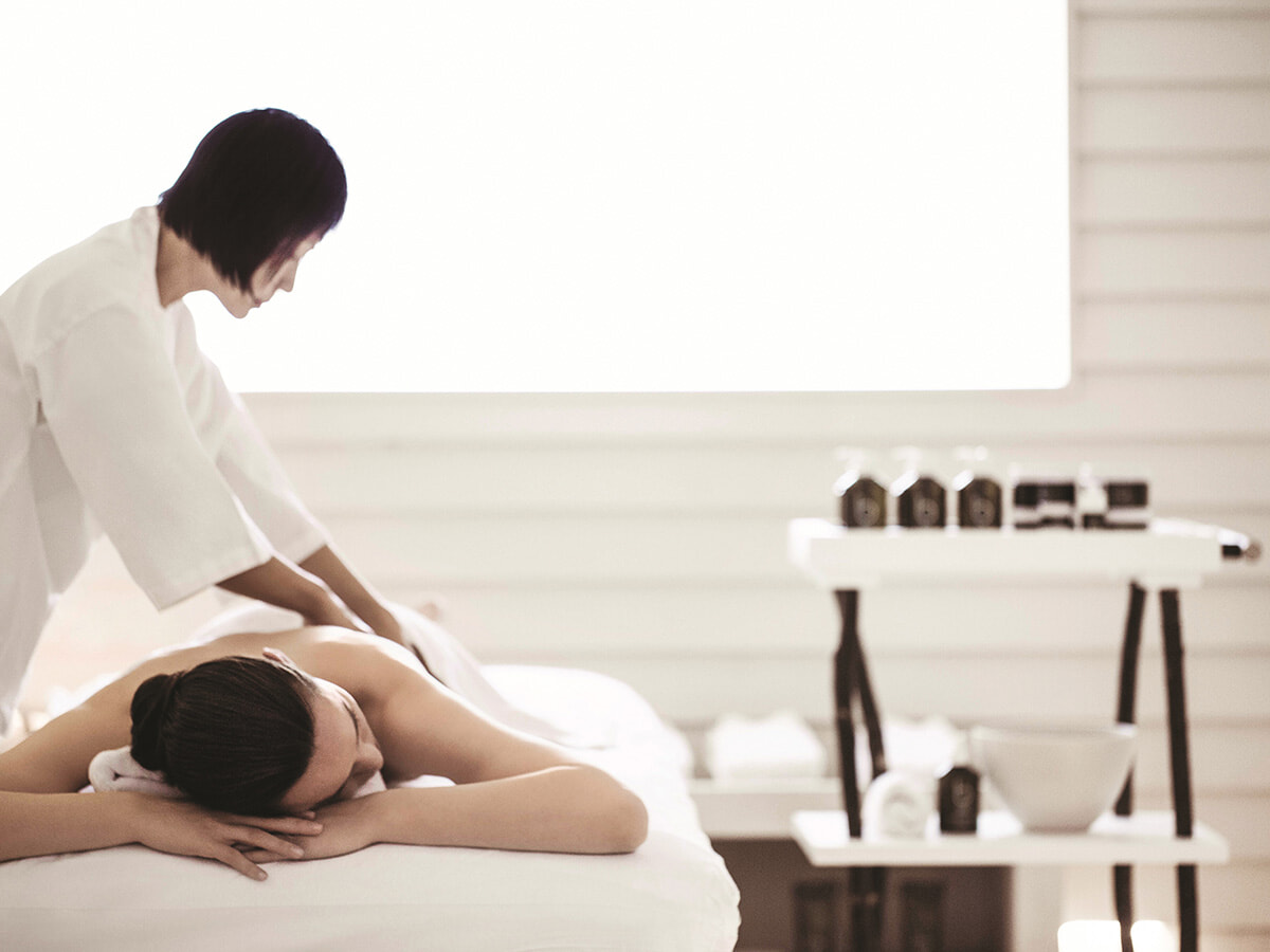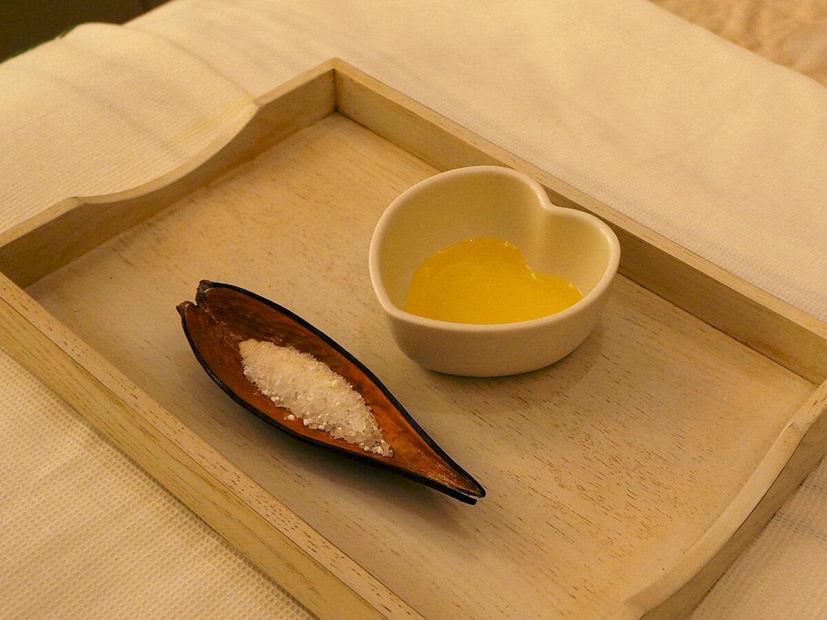 まずは背中のオイルトリートメントからスタート。ゼラニウムやラベンダー、ユーカリなどのハーブをブレンドしたボディオイルをふんだんに用い、なめらかで繊細なタッチで凝りをほぐしていく。慈しむように触れられるほどに、ハーブが幾重にも重なったやすらぎの芳香が部屋へと広がり、おのずと呼吸が深くなっていくのを感じられるはず。