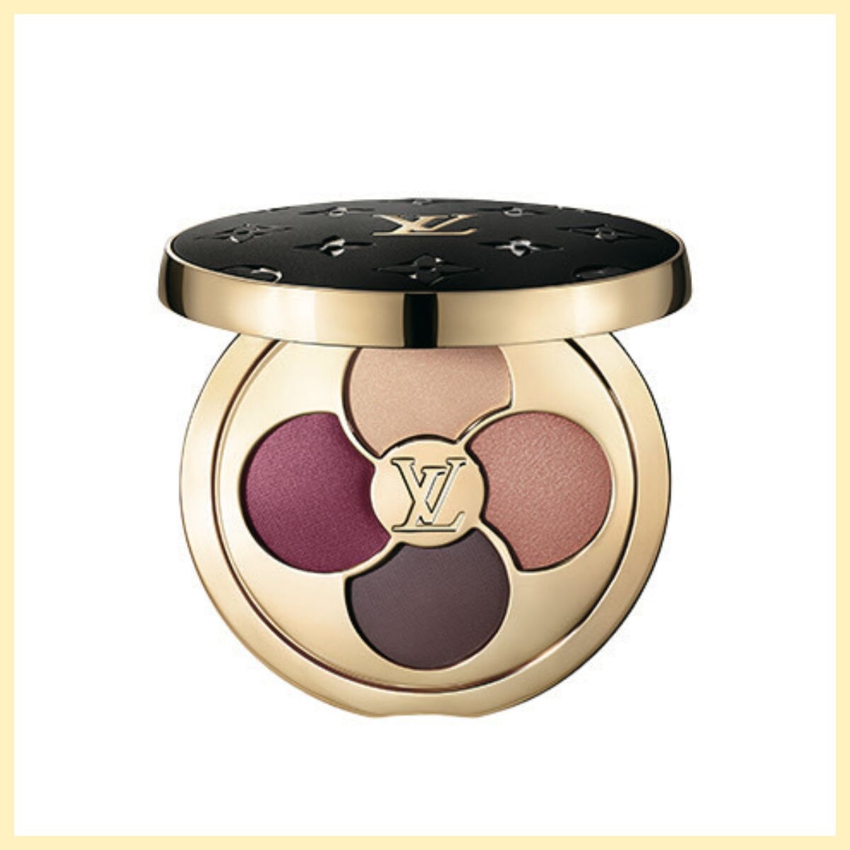 静かな陰影と温度感を宿す4色シャドウ。「撮影で出合ったシグニチャーカラーの美しさ! モノグラム・モチーフのコンパクトは開けるたびワクワクさせてくれる」。LV オンブル 896 ¥36,300/ルイ・ヴィトン