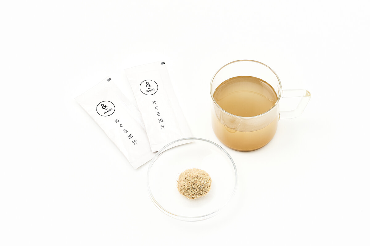 出張先やオフィスへの持ち運びも便利な個包装タイプで、お湯を注ぐだけでさっと飲める本格出汁スープ。添加物を加えていない、素材そのものの旨みを生かしたオリジナルブレンドで、身体にやさしく染みわたる味わい。起床後に飲めば、睡眠中に失われた水分やミネラルを効率よく摂取できるだけでなく、たっぷりのアミノ酸が潤いのある肌づくりをサポートしてくれる。朝の目覚めや、午後のブレイクタイムなど、コーヒー代わりに取り入れてみて。