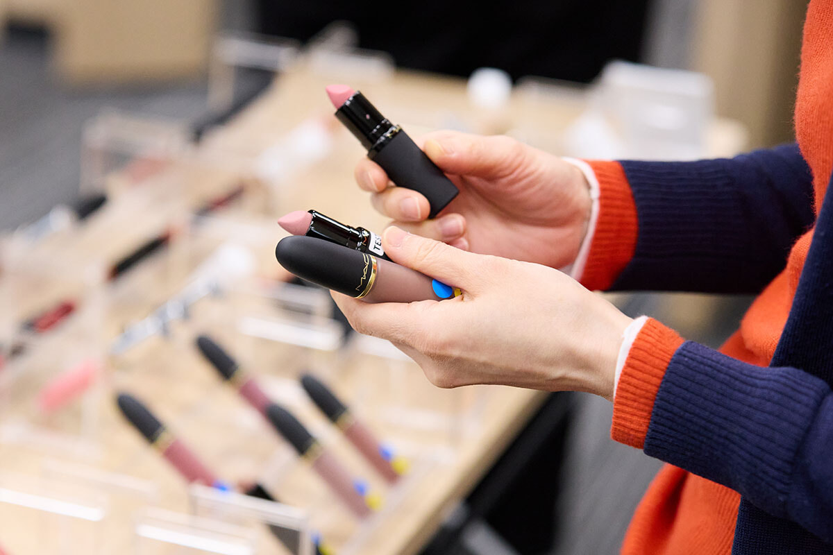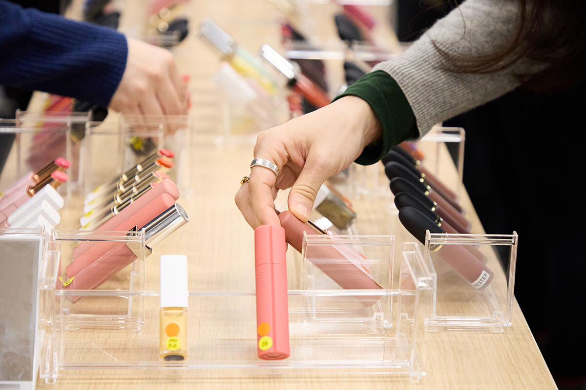 参加者たちは診断結果を参考に、思い思いにリップを手に取る。