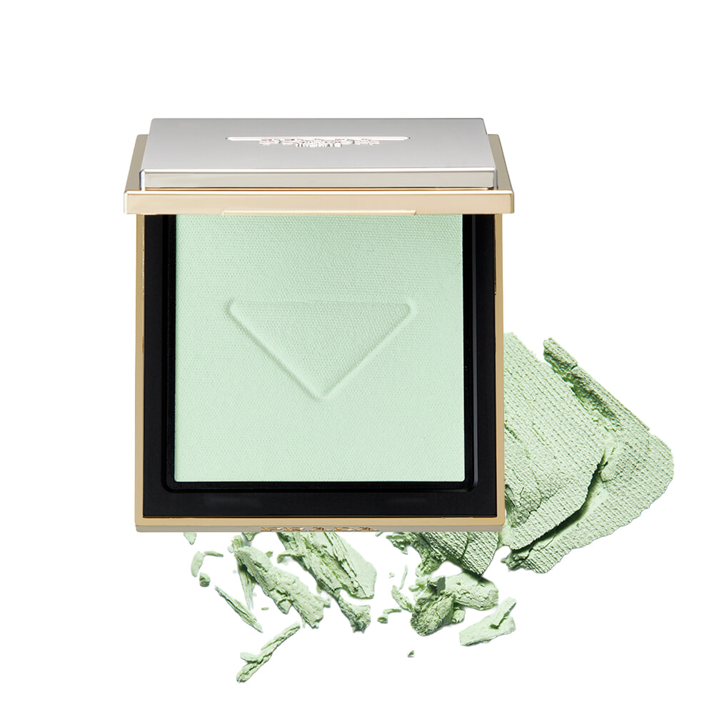 プラダ グリーンのパウダーは肌にのせると透明なヴェールとなり、毛穴や色ムラをソフトフォーカス。しっとりサラリの感触も心地いい。