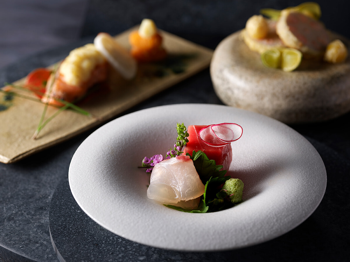 至福の時間のあとは、少しだけ身支度を整えてひとつ上の階の「華香(かこう)」へ。オプションで、四季折々の食材をモダンな発想で活かしたこちらの日本食を楽しむことができる。