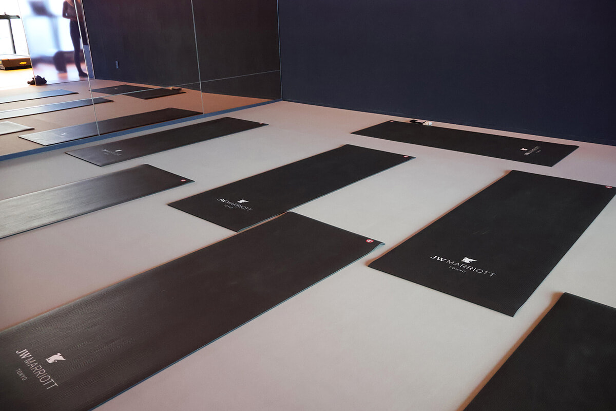 部屋の中にはそれだけでなく、ウェルネスを実践するためのさまざまな仕掛けが。ヨガマットやダンベル、ピラティスリングにマッサージガン……と、ワークアウトやストレッチのために使えるお助けアイテムもその一端。なんて豊富なラインナップ!