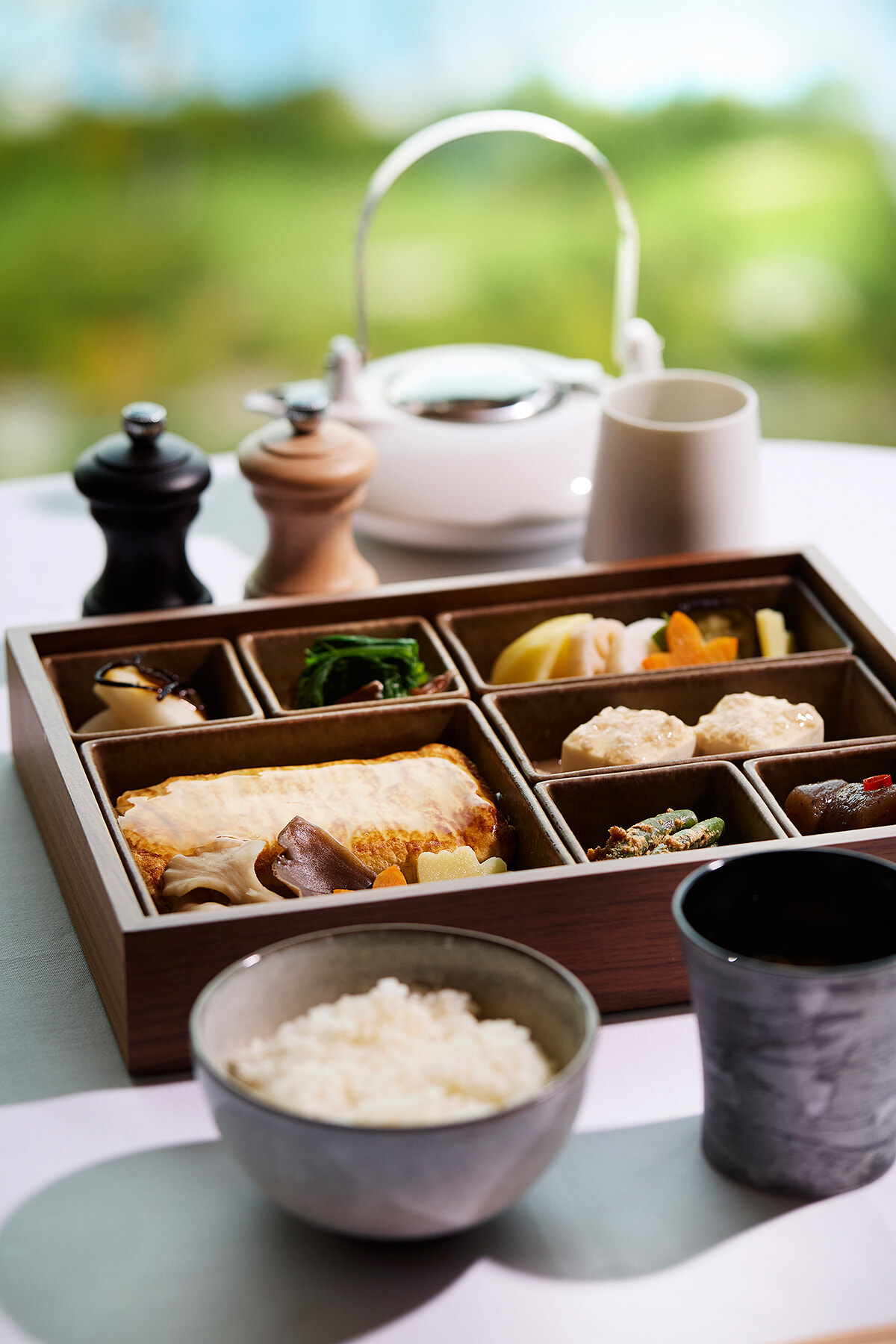 部屋に戻ると、ちょうど朝食が到着。このステイプランでは、モーニングが部屋食になるところも特徴のひとつなのだ。この日用意してもらったのは、日本の精進料理に着想を得たというヴィーガンブレックファスト。歯ごたえのある根菜類や香り高いキノコ、食感に奥行きを増す餡かけなどの調理法が積極的に採用され、物足りなさは皆無。むしろ前日のトリートメントや適度な運動、瞑想による効果もあってか、いつもより食材の味がしっかりと感じられ、この滋味深さが非常に心地よかった。