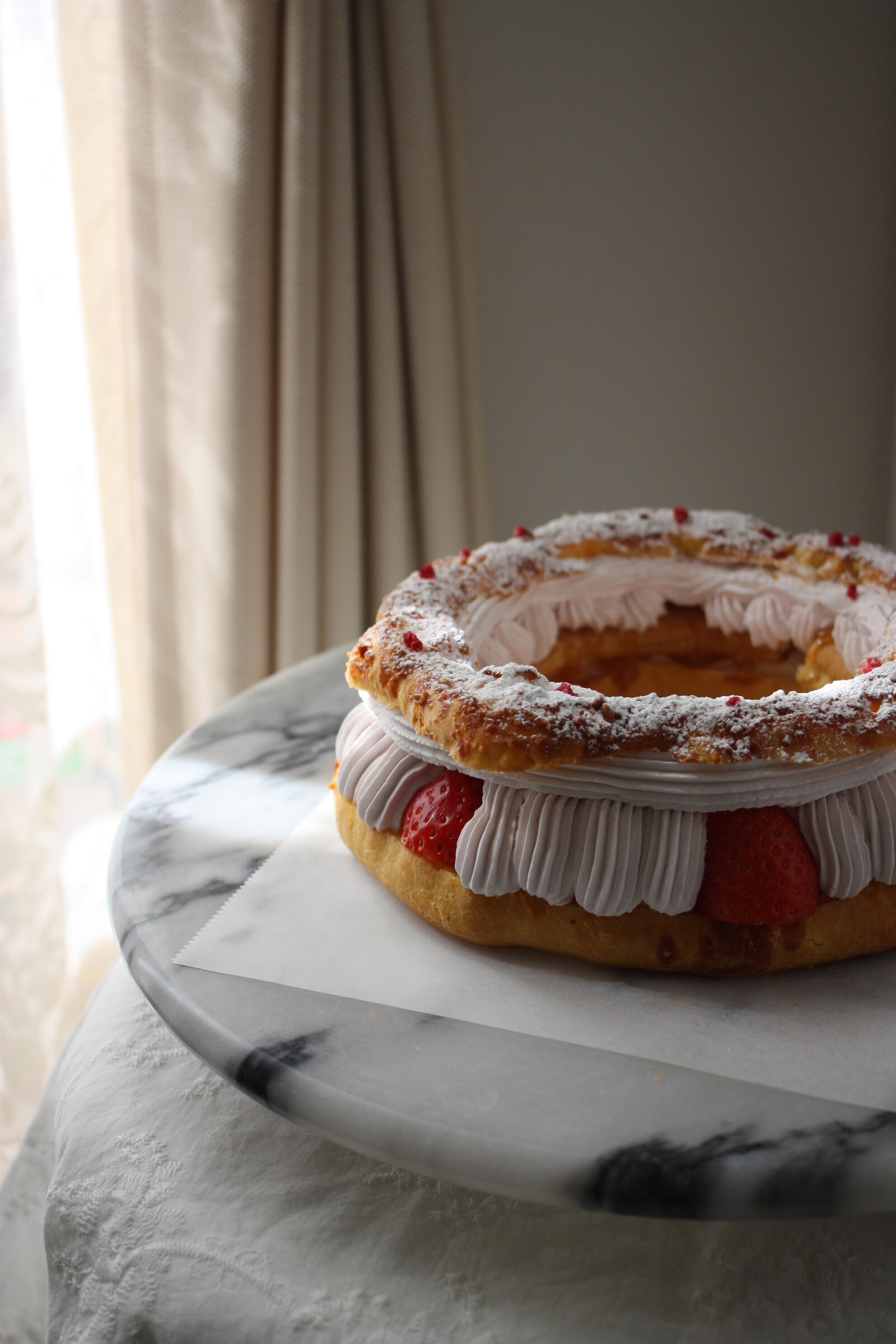 フランスは自転車レースが有名なのですが、パリとブレストという都市間を走る自転車レースを記念して生まれたスイーツ。リング状の形は、自転車の車輪を模しているのだそう。