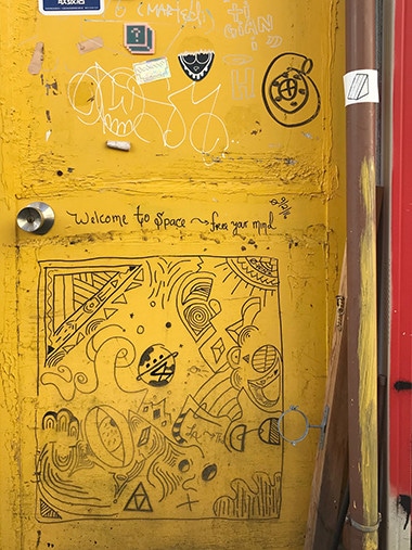 グラフィティも個性豊か。この奥にはどんな店があるのだろう。