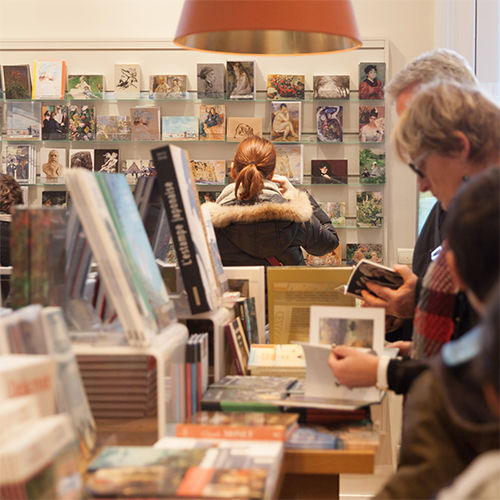 マルモッタン・モネ美術館のお土産コーナーには、モネに関する書籍に限らず、絵ハガキや文具、ポーチや石鹸までバラエティ豊かに揃う。