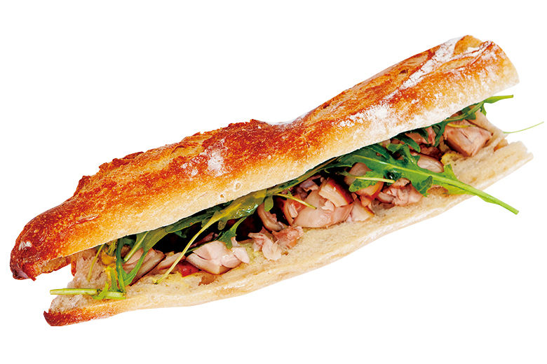 オーブンで焼き上げた乳飲み仔豚と、ルッコラ、マスタードを合わせたサンドイッチ。「Sandwich Cochon de Lait, Roquette, Moutard」6ユーロ