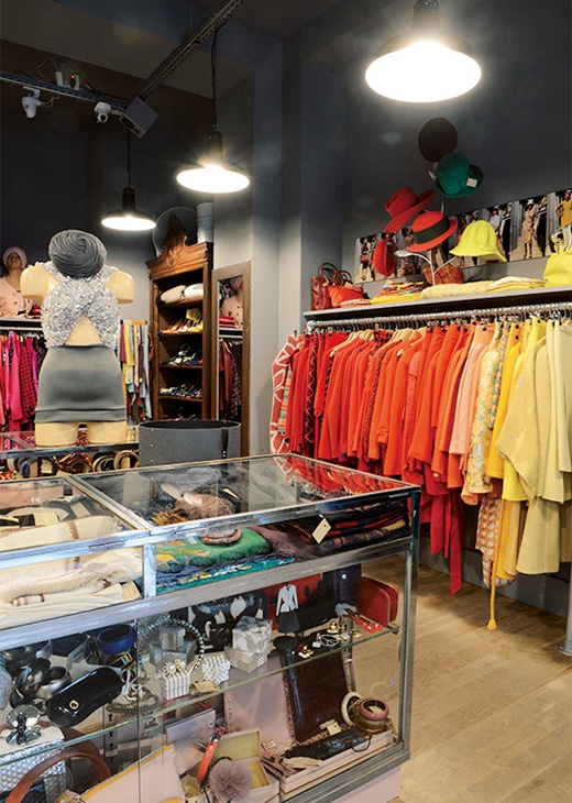 パリでヴィンテージアイテムを探したい! そんな人におすすめの店。2008年の創業以来、モード関係者やファッショニスタに愛される店。1940~90年代のサンローランやランバンなどの一点ものや希少価値の高いアイテムが色別に美しく並ぶ。またフランス各地の伝統メーカーのモデルもラインナップ。20世紀初期から現代までの商品が丁寧にメンテナンスされ、良質な状態を保っているのもうれしい。