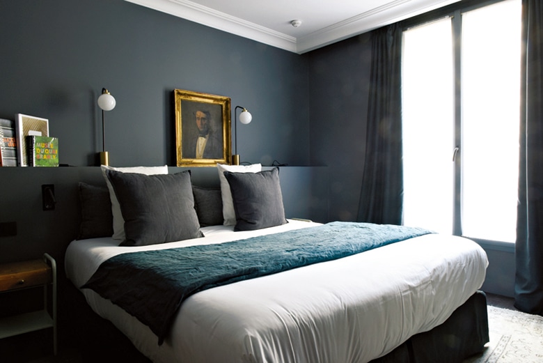 デジタル関連の起業を支援するStation Fがオープンし、”パリのシリコンバレー”になると予想されている13区に立地。IT企業家や新事業の需要を見込んで建てられたのがここだ。それだけに、内装は若手女性デュオが担当し、客室はヴィンテージカーペットや肖像画を取り入れながらモダンなスタイルに。1階には外部のゲストも利用できるコージーなカフェを設置し、映画も上映。フレッシュで元気な雰囲気にわくわくする。