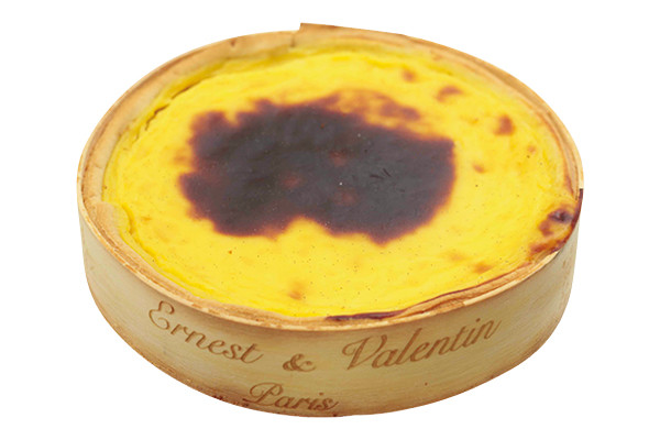 角形の小サイズもあるが、スペシャリテはホールサイズのみで販売するフラン・ドゥ・グランメール。おばあちゃんのフランという意味で、生クリームとバニラを加え、とろりとした食感に。「Flan de Grand-Mère」4人用9ユーロ