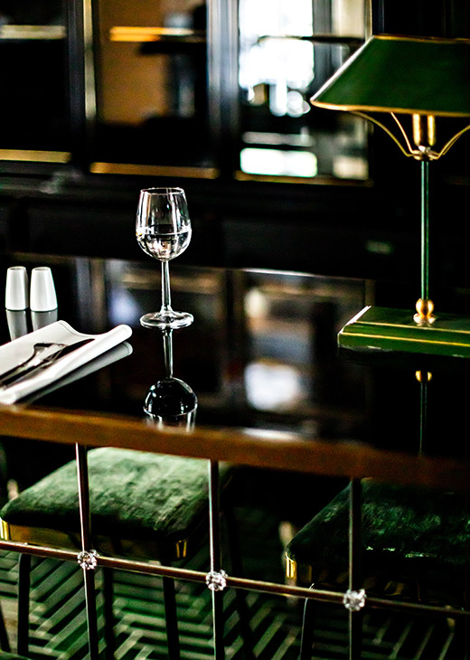 ロビーの延長線上にあり、グリーンでまとめられたレストラン、ガランガ。photo:Benoit Linero