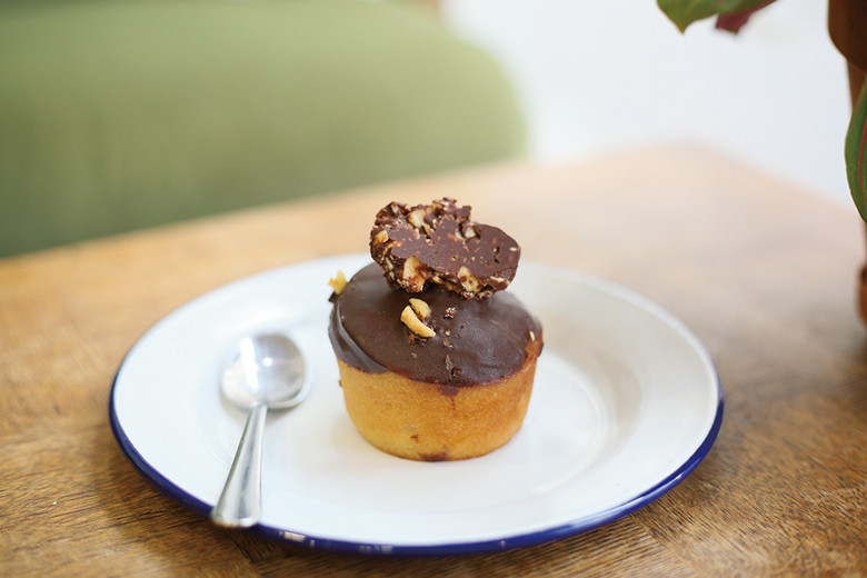 しっとりしたマフィンはグルテンフリー。厚みのある味と甘さに驚かされる。「Muffin Vego」4ユーロ
