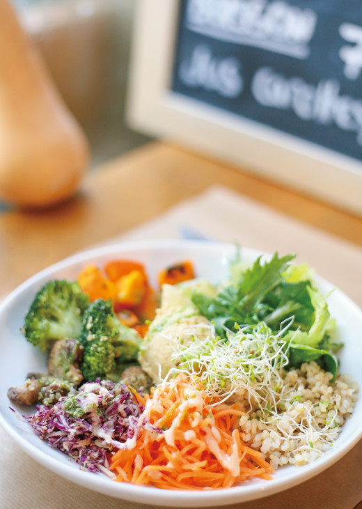 ル・ボン・マルシェの近く、左岸では数少ないヴィーガン&グルテンフリーの専門レストランとして知られる。ヴィーガンに不可欠な豆はもちろん、セルフィーユルートや根セロリ、渦巻きのビーツなど、栄養価の高さで再注目されている昔ながらの野菜をふんだんに使用。ウイキョウとシトロンキャビアのサラダ、パースニップと洋ナシのスープといったオリジナル料理に、醤油やゴマの和風味などもあり、飽きさせないメニュー構成だ。