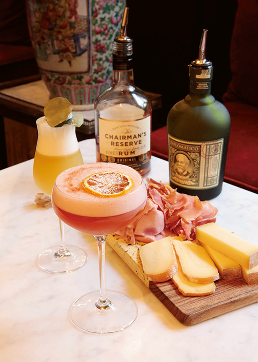 左手前から時計回りに、ベネズエラ産ラムにイチゴとライチが香る「Tendresse」、カリブ産ラムとサトウキビの「Douceur」各14ユーロ、ハムとチーズの盛り合わせ「Planche Mixte」10ユーロ