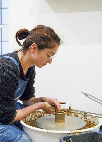 11区の共同アトリエに参画するレアは、陶芸教室でも定期的に教えている。