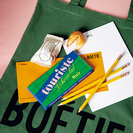 アドリアンのホテルグループ名”Touriste”をあしらった、ちょっとしたグッズもホテルで販売している。
