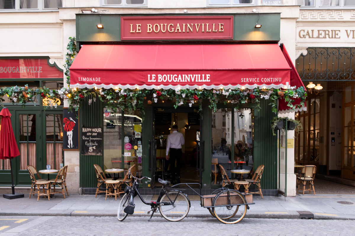 パッサージュ、ギャルリ・ヴィヴィエンヌの入り口という立地ながら、庶民的なところが魅力。ランチタイムには近所で働くパリジャンが集まり、食堂のような雰囲気に。昼12時までは卵を3個使ったオムレツ、または目玉焼きの朝食もある。