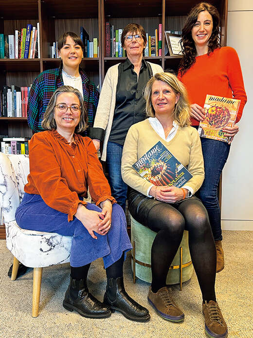1826年創業の「ル・フィガロ」紙から1980年に創刊の「Madame Figaro」は毎週金曜日に刊行される週刊誌。本誌とウェブでライフスタイルを担当する食通の編集者チームが集結!前列左から、エマニュエル・エムリ、ナタリー・ペトレ、後列左から、アレクサンドラ・マルシャン、マリー=カトリーヌ・ドゥ・ラ・ロッシュ、クレール・ミオーヌ。