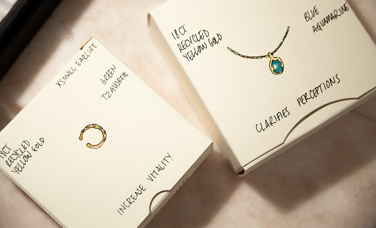 店舗に併設されたアトリエで日々ジュエリー制作に向き合うアナイスは、長年の友人であり、心から尊敬する職人気質なジュエリーデザイナー。トルマリンやサファイア、ガーネット、エメラルドなどのカラフルな天然石を用いて、自然美をファインジュエリーで表現する彼女の世界観に、乙女心をくすぐられます。自分自身のインスピレーションに従い好きなルースを選び、ひとつひとつハンドメイドで作られるジュエリーはとてもパーソナルなもの。肌身離さずお守りのように身につけています。
