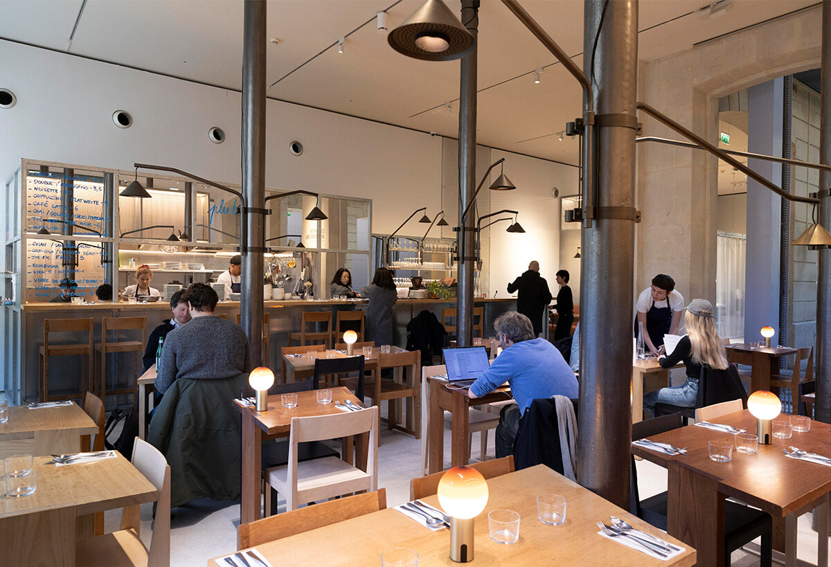 現代アートギャラリー、ラファイエット・アンティシパシヨン内に昨秋誕生したカフェレストラン。ランチには、バターと唐辛子風味のニンジンサラダ、カレー風味の牛肉のパスティーヤといった多国籍な味に、豚の内臓類を詰めたソーセージのアンドゥイエット、野菜のファルシとフランスらしい料理も。ランチに必ず用意するホットサンドの中でも、人気のクロックムッシュやクロックマダムは花椒や唐辛子を加えていて、オリジナリティがある。アートの創造性に呼応して、多彩な味で好奇心をくすぐる。
