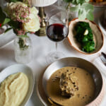 ブラッスリーの定番料理が並ぶメニューで、前菜はウフ・マヨネーズ、パテ・アン・クルート、ソーセージ詰めブリオッシュなど。珍しいのは黒トリュフのスープVGE。これはヴァレレイー・ジスカール・デスタン元大統領が好んだスープで、パイ皮の帽子が被されて登場する。メインは舌平目のムニエル、シーザース・サラダ、モリーユ茸添チキン・スープレム、アンガス・ビーフのベアルネーズ・ソース……。デザートのメニューもクラシックな味が並ぶのだが、ユニークなのはここにエスプレッソ・マルティーニが見つかることだ。カクテル時代ならではの発想だろう。