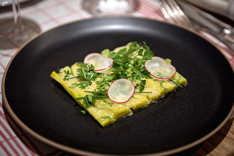 ビストロの冬の定番、長ネギのマリネ。9ユーロ。photo:Julien Mouffron-Gardner