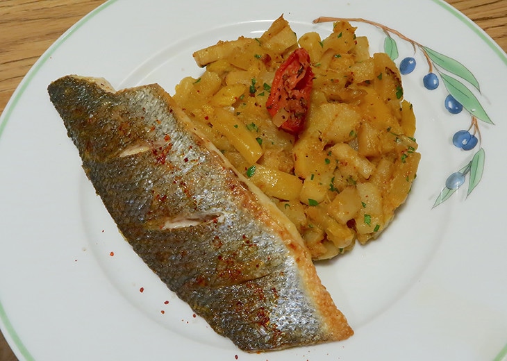 スズキに添えられたのは、バターが効いたルタバガ、トピナンブール(キクイモ)といった冬の野菜だ。22ユーロ。