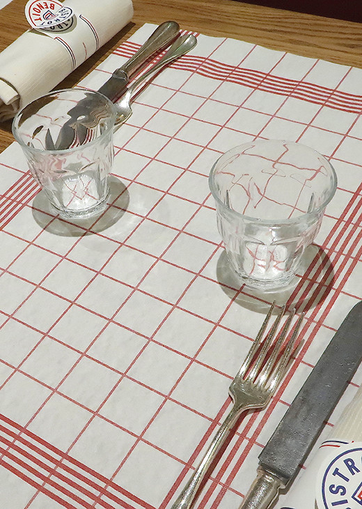 赤白格子、デュラレックスのグラスの組み合わせを真似して、自宅でパリのビストロを再現。