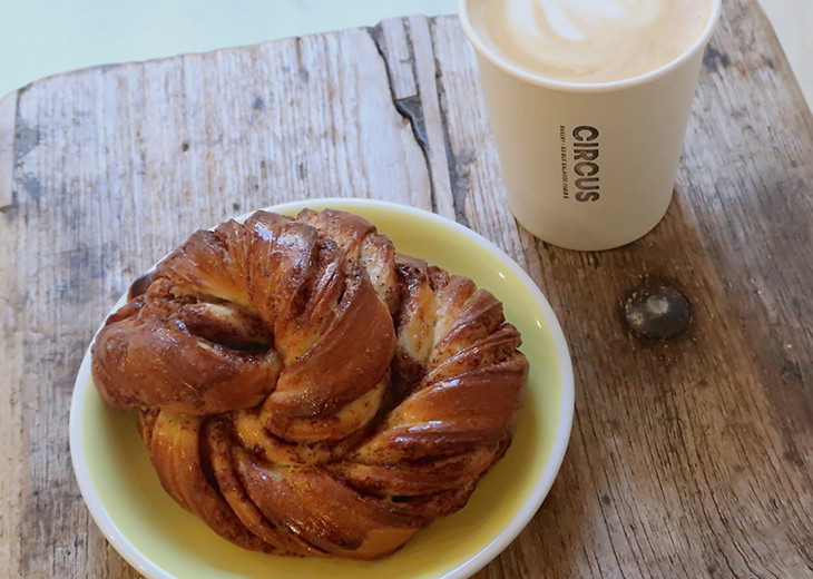 Circus(サーカス)はオープンして約3カ月のパン屋さん。インスタ効果ゆえか、海外の観光客が、5区のちょっと不便な場所のこの店に朝から訪れる。彼らが目指すのは、シナモンバンズ(シナモンロール)だ。アメリカンなシナモンバンズと違い、ここのは北欧スタイル。外側はよい感じに焼けていて、中はブリオッシュ生地なのでふんわり。15分ごとに焼きあがり、そのたびにシナモンの香りが店内に漂う。シナモンが苦手という人も、おいしくいただけてしまうという逸品である。かなり大きめなのだけれど、焼きたてのバンズをジュワッと食べ始めるとそのサイズがうれしくなるはず。