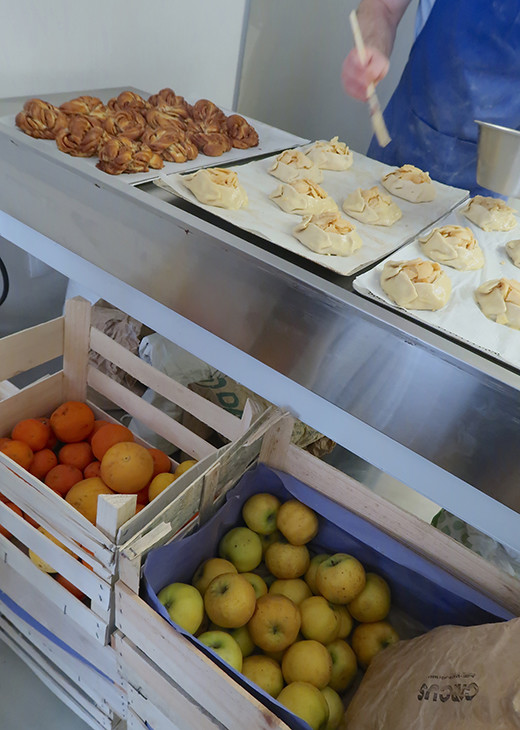 アップルタルトの準備中。ビオのフルーツで自家製マーマレードも作り、販売している。
