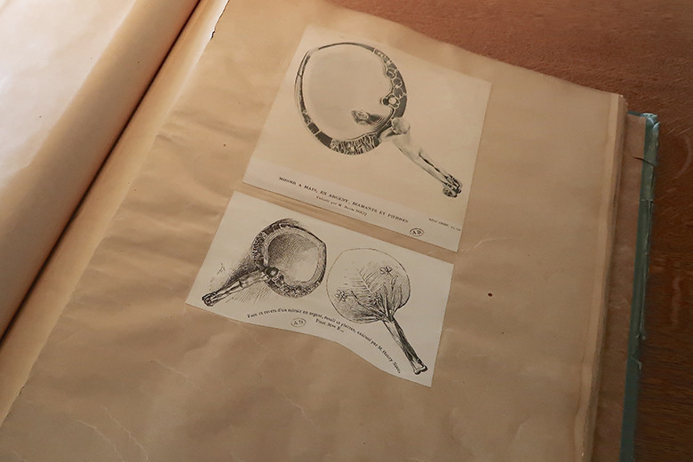 たとえば昔の手鏡のデザインは?と開いてみる。photos:Mariko Omura