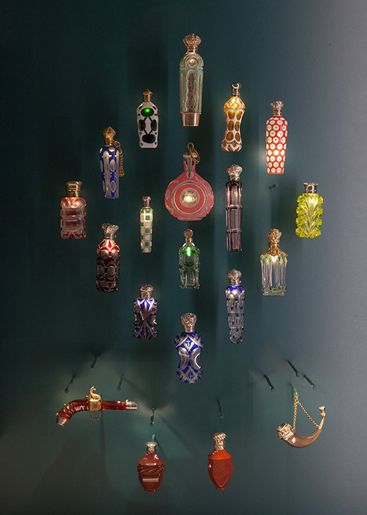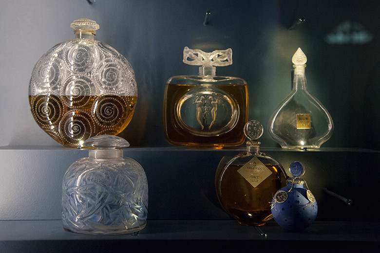 ラリックの香水ボトルファンを狂喜させるコレクションが見られる。