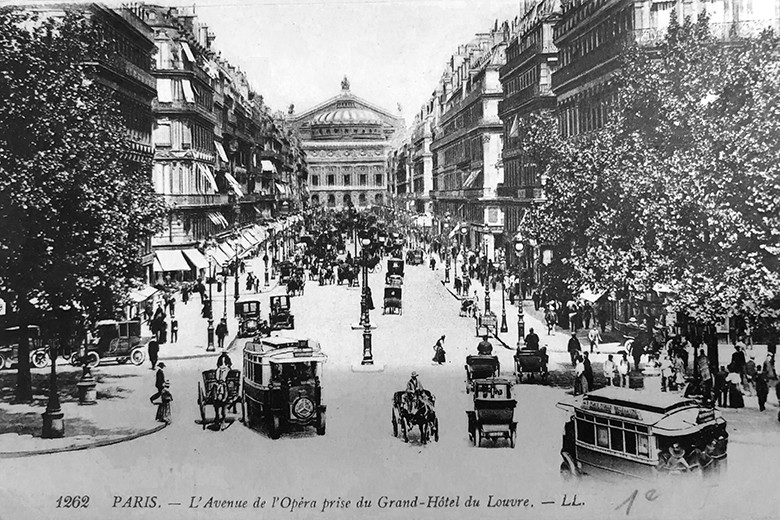 オペラ・ガルニエが完成したのは1875年。オペラ通りはナポレオン通りと最初命名されていたが、ナポレオン3世の失脚により1873年にオペラ通りに改名された。