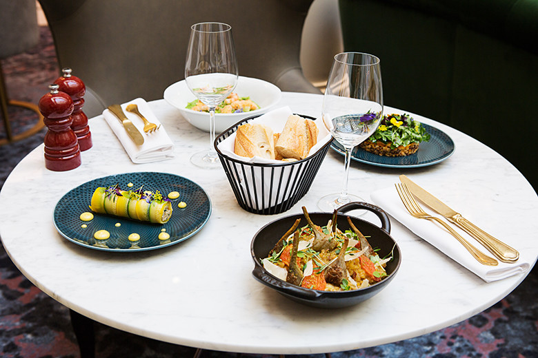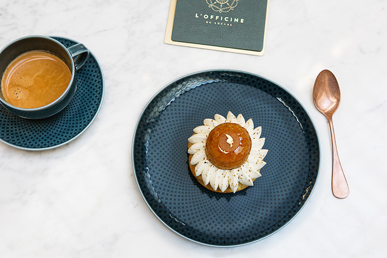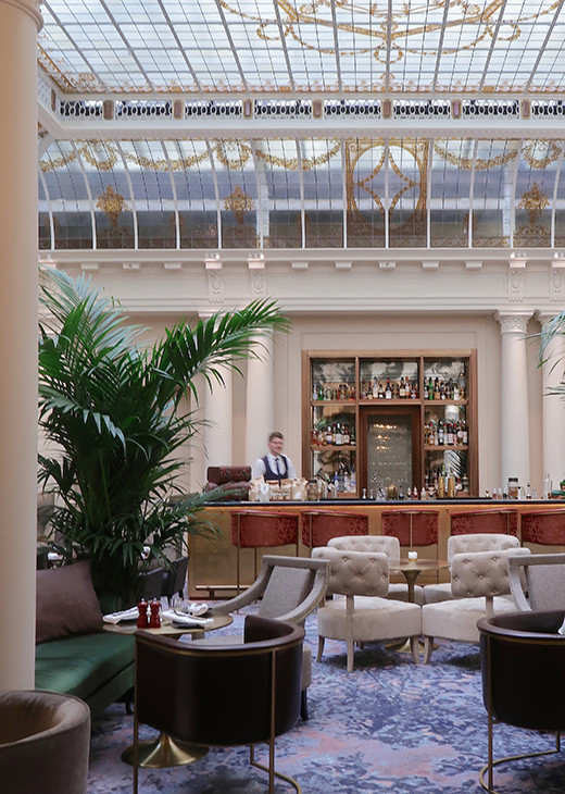 パリの中心部で静かに寛げる場として密かに愛用するファンが多かったホテルのバーは、どうなったか。改装後、L’Officine du Louvre(オフィシーヌ・デュ・ルーヴル)として新しいコンセプトで生まれ変わった。工事中に天井の中から姿を現した19世紀のガラス屋根がきれいに修復され、自然光が差し込む空間に変身。なぜ、オフィシーヌなのかという命名については、この場所にルイ14世の薬剤師だった女性が住んでいたこと、そして近所にジャン=ヴァンサン・ビュリーの香粧品の店があったことに由来している。バーのカクテルやドリンク類にはアロマティックハーブやプラントを使用。食事もグリーンを意識した料理がランチメニューに並ぶ。ゆったりとした雰囲気は改装前と同様なので、ブラッスリーの活気に満ちた環境より内輪な気分が望ましいときは、オフィシーヌ・デュ・ルーヴルへ。あるいはここでアペリティフを楽しんでから、いざブラッスリーでディナー! というのも悪くないだろう。