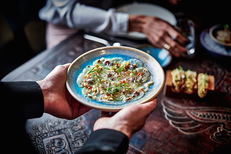ペルー料理を代表するセヴィーチェ。1階にはセヴィーチェ・バーカウンターが設けられている。
