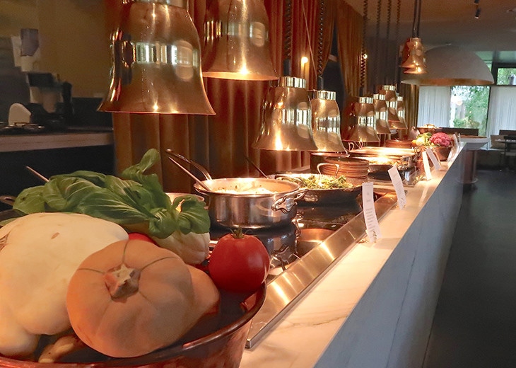 メインはセルフサービスではない。選んだ料理をお皿にサービスしてもらう。ランチは前菜+メイン またはメイン+ デザートで23ユーロ、前菜+メイン+デザートで29ユーロ。ディナーはビュッフェで39ユーロ(飲み物別)。