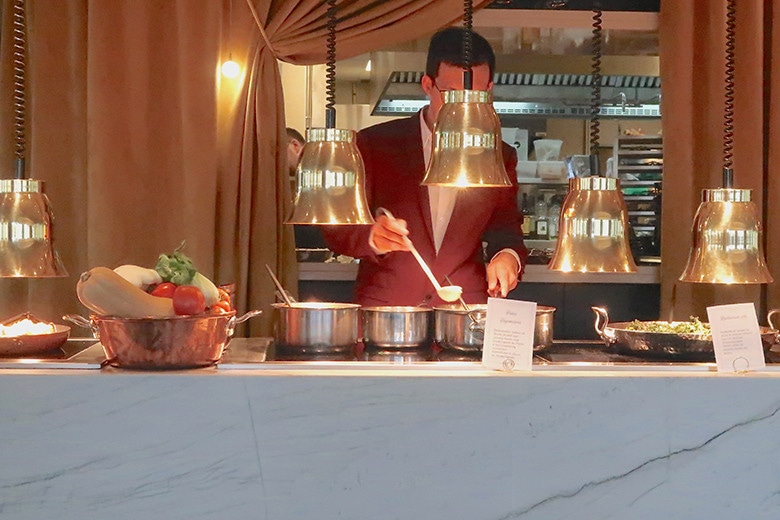 前菜、メイン、デザートがずらりと並ぶカウンター。どれもおいしそうで迷うこと、間違いなし。
