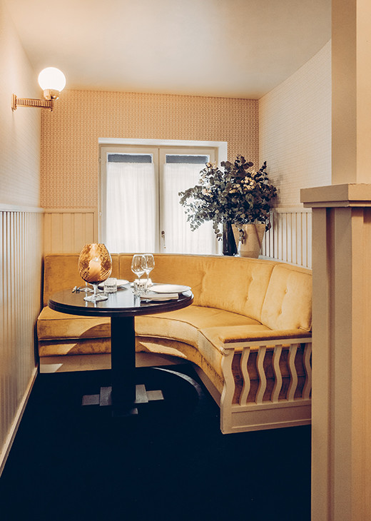 4つの個室サロンを持ち、2フロアからなるレストラン。 壁、床、照明、家具……ドアノブに至るまで場所の記憶を大切にしつつ、カシラギは改装を成し遂げた。彼は照明の電球の色にもこだわり、夜はまるでシャンデリアの灯りで食事をしている雰囲気が醸し出されるように工夫されているそうだ。2階席に設置された横長の棚には、これまでのゴンクール賞受賞作の初版が並べられている。将来のため、40冊くらい追加できるスペースがとってあるという。2019年、ドゥルーアンの歴史に新しいページが開いたのだ。