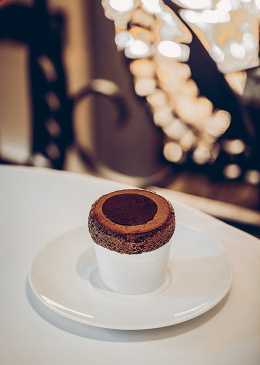 アラカルトのデザート「ブラックチョコレートのスフレ」17ユーロ ©Matthieu Salvaing