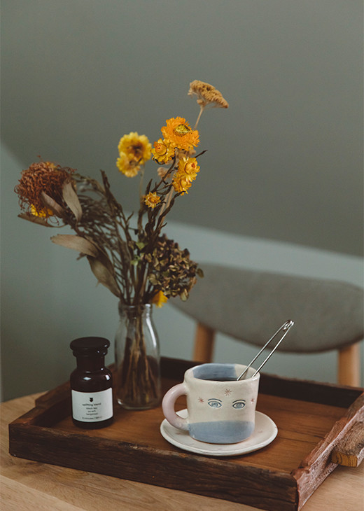 メキシコで作られた、顔を手描きしたカップがチャーミングだ。photo:Sophia van den Hoek