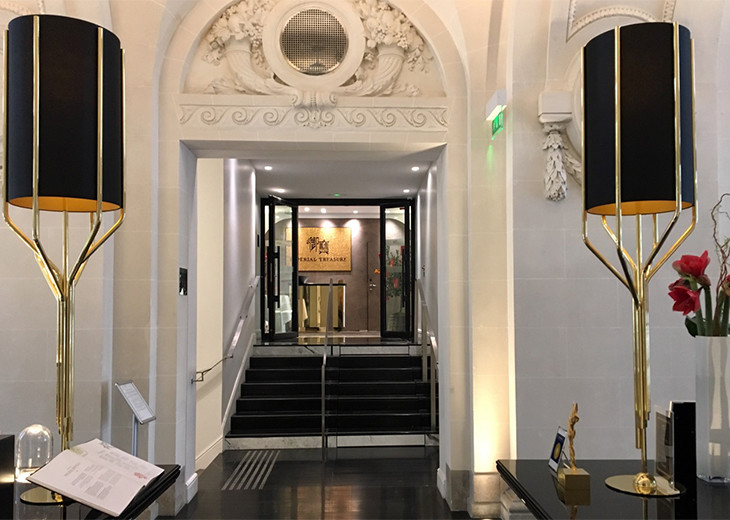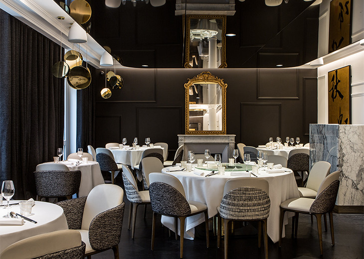 パリで中国料理!?というなかれ。シャンゼリゼ大通り、ルイ・ヴィトンのブティックからそう遠くない場所に昨秋オープンしたImperial Treasure(インペリアル・トレジャー)は、パリならではの魅力を秘めている。というのも、レストランと隣接のホテルClef Champs Elysées Hotel(クレ・シャンゼリゼ・ホテル)を擁するのは、かつてヘネシー家のお屋敷だったという建物なのだ。そう、あのコニャックでおなじみの名家ヘネシー!である。ジェームス・ヘネシーが巨額を投じて1911年に完成させたバサノ通り44〜46番地の建物。46番地がホテル、44番地がレストランとなり、どちらも室内建築家ジャン =フィリップ・ヌエルに変身が任された。