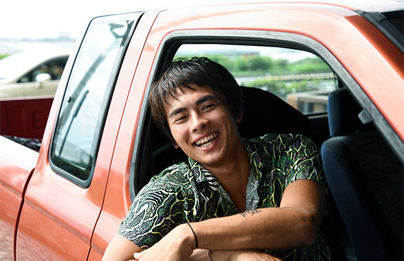 そこにいる誰もを引き寄せ、自分のテリトリーへと巻き込む不思議な力を持つ彼の内側に秘めた、サーフィンに対する真摯な一面に迫る。
