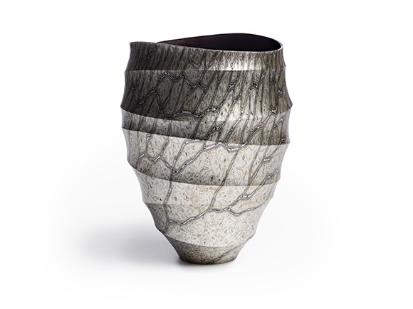 佐故龍平の「Mokume-gone Vase」(2017)。伝統工芸の木目金の手法を用いながらも現代的な作品に仕上げた。