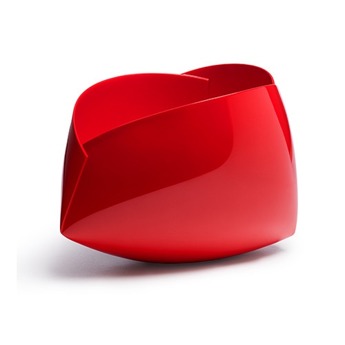 ベルギーのアン・ヴァン・ホーイによる「Object from ‘The Earthware Ferrari’ series」(2017)は、ミニマムな陶器にフェラーリ社の真っ赤な車用塗料を施したというユニークさだ。