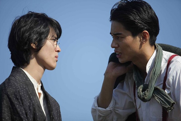 公開順は3作目になるが、7月7日に公開の『菊とギロチン』が実質的なデビュー作。演じるのは大正時代の実在のアナキスト、古田大次郎。中学の時に、紡績工場で働く女工たちの悲惨な労働状況に憤り、早稲田大学入学後は、大杉栄をはじめ社会主義者と交流を深め、労働者運動に身を投じるように。大正12年9月1日、関東大震災の混乱のさなか、大杉栄が東京大手町の憲兵隊本部で扼殺されたことを受け、古田は盟友、中濱鐵(東出昌大)とともに復讐を誓い、世の中の顛覆を目指す。憲兵から身を隠している時に、当時人気を博した女相撲の力士たちと知り合い、交流を育む様を描いたのがこのドラマである。