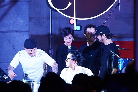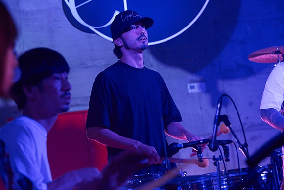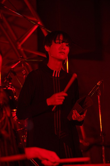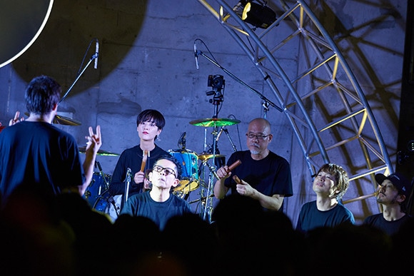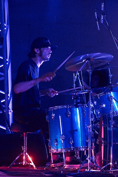 ドラムを演奏する金子ノブアキ。ミュージシャンたちは交代しながらさまざまな楽器を奏でた。