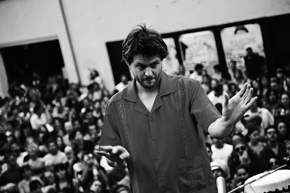 サンティアゴ・バスケス(以下バスケス) 初対面はたしかスカイプを通じてだったよね。カフカはすごくシャイなイメージだったんだけど、なぜハンドサインを学びたいのか、どういうことを日本でしたいのかという熱い想いを聞いたら、音楽家としての芯の部分では共通項もあって、ぜひ一緒にやりたいという気持ちになっていった。僕も前からハンドサインのパーティを日本に持っていきたいと考えていたんだけれど、タイミングを待っていたと言ってもいいかな。今回参加した芳垣安洋さんや岡部洋一さんとは、以前から交流もあったしね。ただ、日本に住むわけにもいかないから、同じ想いを持って進めてくれるリーダーを探していたんだ。