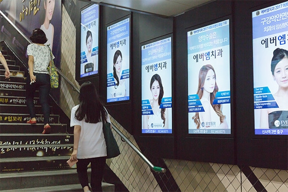 ソウルでは街のあちこちに、美容整形クリニックの広告が掲示されている。©Alamy Stock Photo/amanaimages